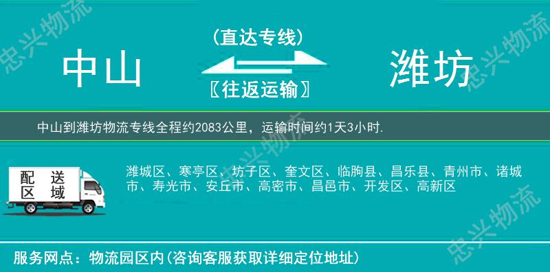 同時,為了方便廣大客戶從中山物流到濰坊的不同運輸時效和物流成本要求,忠興物流特推出中山到濰坊多種運輸方式,以此來降低從中山到濰坊運輸?shù)奈锪鞒杀?,提高到的物流效率,以便為新老客戶提供更加完善的從中山到濰坊的一站式物流服務(wù)!
